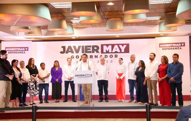electo de Tabasco, Javier May Rodríguez, presentará a los integrantes de su gabinete. Son siete mujeres y siete hombres que estarán al servicio del pueblo, afirmó. Al respecto la legisladora dijo. “Como mujer, celebro que la mayoría del gabinete anunciado hoy por Javier May sean mujeres. Estoy convencida de que el desafío de este nuevo gabinete será legitimar con resultados y