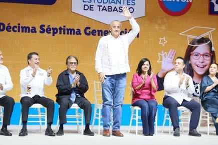El mandatario tabasqueño, acompañado del director general del Grupo Cantón y del diario Tabasco Hoy, Miguel Cantón Zetina, encabezó este martes la entrega de reconocimientos y obsequios a 1 mil 388 estudiantes de los 17 municipios que pertenecen al programa “Niños de 10”, auspiciado por esa casa editorial, como parte de un acto humanista que eleva la esperanza de una niñez y juventud con un futuro prometedor.