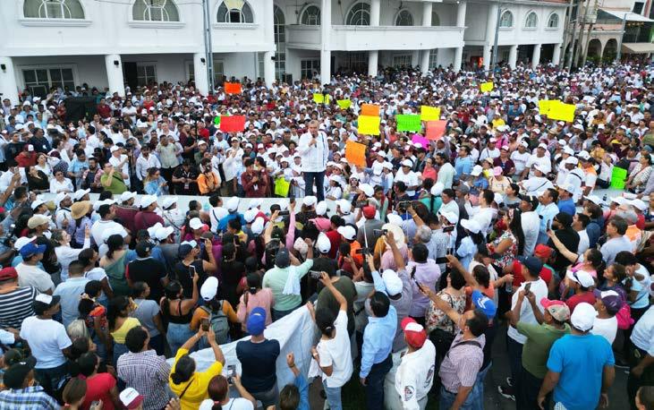 del poblado, donde le esperaban otras 14 mil personas entre hombres, mujeres, adultos mayores, jóvenes, así como trabajadores en general, acompañado por su esposa Dea Isabel Estrada Rodríguez y sus hijos Payambé y Augusto, el tabasqueño no pudo ocultar su emoción y prodigó elogios para sus “paisanos”, ya que se autoproclamó chiapaneco por adopción, si bien es orgullosamente tabasqueño.