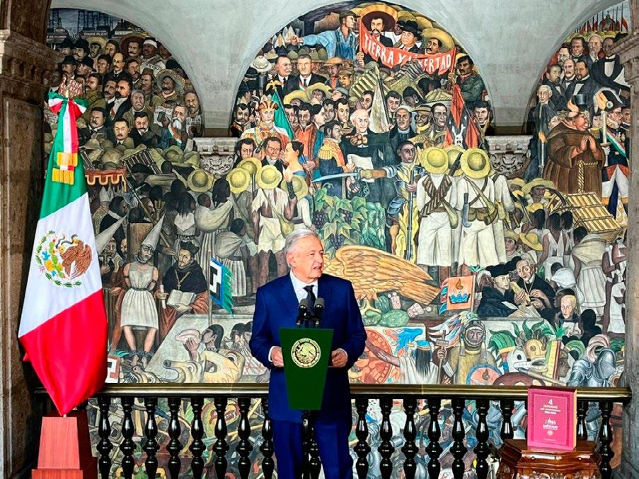 “El peso no se ha devaluado y han aumen tado las reservas del Banco de México”, dijo López Obrador, quien también complementó que el país es uno de los que tiene más riqueza cultural en el mundo. “Se garantiza la libertad de expresión y el gobierno no participa en fraudes”, dijo López Obrador “México está re cuperando su prestigio en el mundo”.“Podemos decir que en México ya no do mina la oligarquía, sino que la prioridad son los pobres, la corrupción no se tolera ni hay impuni dad para nadie, no hay lujos en el gobierno y los servidores públicos ac túan con eficiencia”. “A estas alturas del sexenio nos va a to car celebrar muchas co sas buenas en beneficio del pueblo y se va a con solidar la transforma ción”, dijo el Lópezmandatario.Obrador citó en su cuarto in forme de gobierno una carta que le entregó Joe Biden, presidente de Es tados Unidos, quien dijo que las negociaciones entre México y el país vecino llegaron a niveles récord.Presumió que México está considera do como uno de los me jores países para inver tir, y que en dos años se están teniendo resulta dos históricos, ya que la inversión foránea creció en más del 20 por cien to en el primer trimestre de 2022. En el contexto de la guerra entre Rusia y Ucrania, López Obrador dijo que los programas para el bienestar, el au mento en las remesas y el tratado comercial con Estados Unidos ha apo yado al gobierno en ma teria económica.Elpropósito no es militarizar, sino con seguir el propósito sano de lo que es la seguridad pública del país, dijo Ló pez Obrador. “Envié una refor ma legal con el propó sito de que la Guardia Nacional pase a la Se cretaría de la Defensa con la finalidad de que se consolide, y sobre todo para que no se corrom pa, como sucedió con la antigua policía federal”. López Obrador ‘tiró una pedrada’ a los expresidentes, y dijo que con Vicente Fox, Felipe Calderón y Enrique Peña Nieto los homicidios crecieron.Robos, secuestros y otros delitos en gene ral se redujeron en 23.4 por ciento. “Algunos no saben o tienen una per cepción distinta por la campaña amarillista por medios que actúan en favor de nuestros adver sarios. Pero con datos del Inegi podemos de cir que se redujeron los número de homicidios”, dijo el mandatario. Los delitos del fue ro bajaron en 29.3 por ciento. El mandatario aseguró que se está re duciendo la inciden cia delictiva. “No ten go duda, y ojalá esto se pueda compartir cada vez con mayor número de personas... de que la paz es fruto de la justi cia, y que la clave está en la atención a los jóvenes y a la población más vul nerable y a los margina dos de los beneficios del desarrollo”.Enmateria de sa lud, López Obrador dijo que se está trabajando en un sistema de salud federalizado IMSS Bien estar para que en 2023 se garantice “el derecho constitucional del pue blo a laSesalud”.sigue aplican do el programa La Es cuela es Nuestra, y se crearán más de 55 uni versidades nuevas para la formación de médi cos. El Presidente dijo que no se ha reportado ningún paro, y que los maestros no han deja do de acudir a las aulas. También dijo que era vulgar la propaganda so bre que los maestros “no trabajaban”, y que esta “terminó en el basurero de la historia”.“Losmaestros son apóstoles de la enseñan za”, dijo el mandatario. En materia edu cativa, López Obrador destacó un “regreso a la normalidad” respecto al cierre de aulas por la Sepandemia.otorgan becas a 11 mi llones de estudiantes. “El gobierno que encabezo tiene como principal distintivo los programas para el bien estar” asevera López Obrador, quien afirma que la prioridad son los pobres.Se han otorgado créditos de FOVISSSTE e Infonavit en beneficio de 2 millones de trabaja dores. Se han invertido 38 millones de pesos en mejoramiento urbano en 135 municipios del país. Desde que están las aduanas a cargo de la Secretaría de Marina ha habido un aumento en ingresos del 20 por ciento. En aduanas no se permite el contrabando. “En 2023 comen zará a funcionar la ex tensión del Tren Subur bano, que va de Lechería Pasa a la 3...