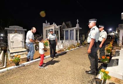 parte del “Operativo Panteón Seguro”, la noche de este 1 de noviembre elementos de la Policía Estatal, Sedena y Guardia Nacional, realizan recorridos de vigilancia en los alrededores y al interior del Panteón Central de la Ciudad de Villahermosa, donde las familias tabasqueñas visitan a sus fieles difuntos. También apoyan elementos de Protección