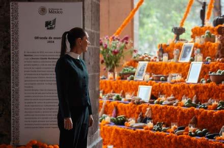 Claudia Sheinbaum Pardo presentó el altar del Día de Muertos de Palacio Nacional está dedicado a las heroínas de la patria, a nuestras ancestaras.