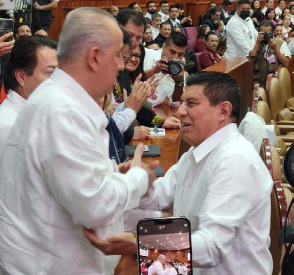 lomón Jara en su toma de protesta como Go bernador Constitucio nal del Estado Libre y Soberano de Oaxaca, y al encuentro con el pue blo desde el auditorio de la Guelaguetza, don de de igual forma asiste mi amigo Mario Delgado Carrillo, líder nacional de Morena”, publicó el mandatario de Tabasco en sus redes sociales. En su mensaje, Jara Cruz destacó los avances de los gobier nos progresistas estata
