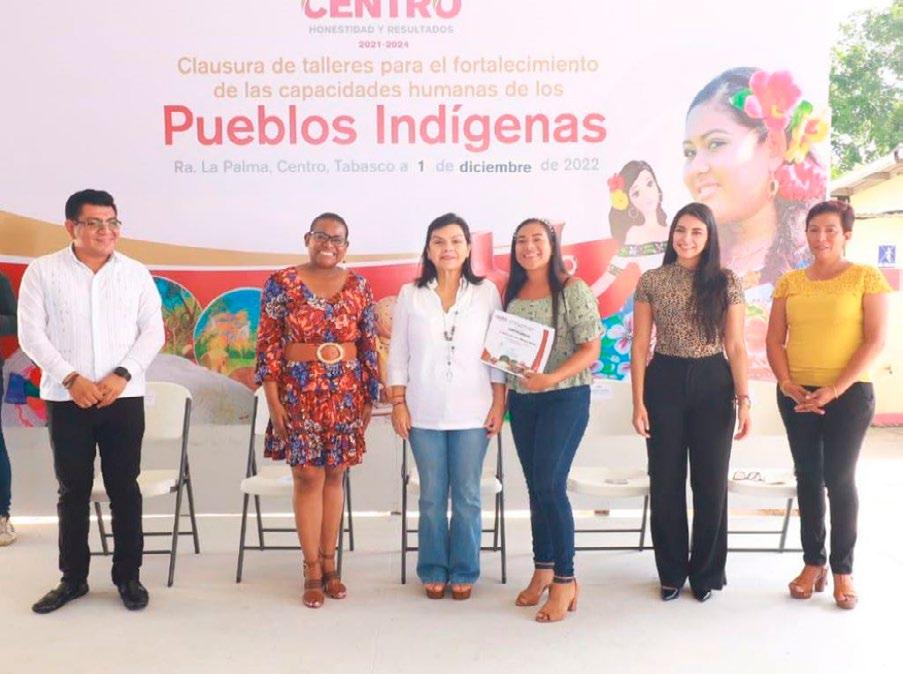 La Palma, Centro, Tabasco, 1º de diciembre de 2022.Con resultados exitosos en la capacitación de diversos oficios, instrui dos en español y lengua yokot’an, este día la al caldesa Yolanda Osuna Huerta clausuró aquí, los Talleres para el For talecimiento de las Ca pacidades Humanas de los Pueblos Indígenas y anunció que en 2023, continuarán y se exten derán para beneficiar a más niños, adolescen tes, hombres y mujeres de Centro.