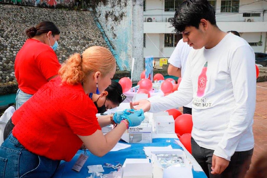 Villahermosa, Tabas co; jueves 01 de di ciembre de 2022.- La secretaría de Salud, a través del CESSA Ga viotas, realizó este jue ves Jornadas de Salud, para detectar VIH, Sífilis y Hepatitis C y realizar muestras de glucosa, toma de presión arterial, talla y peso, así como brindar orientación de salud bucal, métodos de planificación familiar, mediante módulos ins talados en el parque La Bandera de dicha colo nia.