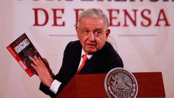 López Obrador muestra su más reciente libro.
