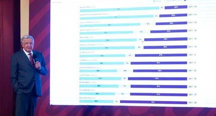NMX, 2 DE SEP TIEMBRE DE 2022. El presidente An drés Manuel López Obra dor reveló la encuesta de Morning Consult que lo coloca como el segun do presidente con mayor aprobación en el mundo. Durante la conferencia de prensa matutina, el presi dente mostró la medición que lo coloca en segundo lugar de los mandatarios con mayor popularidad entre los ciudadanos, con el 70 por ciento de apro bación, solo debajo del primer ministro de la In dia, Narendra Modi, quien cuenta con el 75 por cien to. Y para que los opositores se ardan, el Presidente dijo estar or gulloso de sus raíces, pues alcanzó su meta de estar al frente de México pese a ser originario de un pueblo de lavoyofrezco“QuieroTabasco.presumir,disculpasporqueatiraraceite.Estaesencuestaquesehace