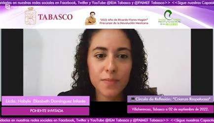 - El Instituto Esta tal de las Mujeres (IEM), realizó este viernes el círculo de reflexión de nominado “crianza res petuosa”, a cargo de la psicoterapeuta Nabyle Elizabeth Domínguez In fante. Durante la charla, la especialista, puntua lizó que la crianza res petuosa también es lla mada crianza con apego o crianza natural y está basada en la cercanía y el vínculo emocional en tre padres e Comentóhijos. que la crianza respetuosa muestra la importancia de aprender el mundo emocional, para brindar a los hijos un trato más respetuoso con el fin de permitirles que tengan más libertad para ir mo delando su personalidad en base a las normas y valores que se les pue den transmitir.Indicóque dentro de las pautas para gene rar una crianza respetuo sa en las niñas, niños y adolescentes destacan: el amor incondicional, la empatía, así como el respeto.Durante el evento virtual, la ponente com partió algunas pautas a seguir para iniciar una crianza respetuosa y educar a los hijos de for ma consciente.“Nosotras somos el primer vínculo que te nemos hacia nuestros hijos, entonces para po der crear una crianza respetuosa debemos ser conscientes de nuestras necesidades y ser res petuosas con nosotras mismas”,Domínguezsubrayó. In fante manifestó que en ocasiones es primordial acudir a los profesiona les para poder reapren der sobre el cuidado de los hijos ya que –dijo- al día se generan diferen tes emociones.“Laimportancia de vernos a nosotras mismas y darle prioridad a nuestra salud emo cional, es esencial para poder llevar un equili brio en nuestra vida… Muchas veces vemos al exterior sin embargo, es necesario escuchar nos y cuidarnos para po der cuidar a los demás”, destacó.La especialista recomendó a los padres de familia regular sus emociones para conec tar con sus hijos e hijas, ser empático con el pun to de vista del niño, res petar su individualidad y sus ritmos de desarrollo, acordar con él los límites y reglas, así como des tacar sus progresos.