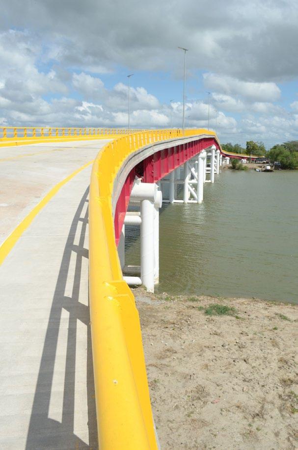 Concluido en enero de este año, a la distancia, en medio de un extenso espejo de agua que conecta con el Golfo de México, el puente Quintín Arauz roba la mirada, sostenido por 10 pilotes de acero, 13 apoyos y 11 pilas centrales.
