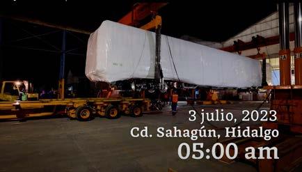 “El primer tren de cuatro vagones salió hace unos momentos de la planta de Alstom de Ciudad Sahagún, Hidalgo, y está en camino hacia el taller y cochera de Cancún a donde llegará el 8 de julio para su ensamblaje e inicio de pruebas estáticas.