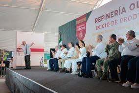 podía construir una refinería y hoy esta majestuosa obra petroquímica y petrolera, inicia su operación. Con voluntad y con tesón y mucha convicción. Todo es posible. Es un orgullo esta hazaña para que el petrolero sea procesado de forma racional”. En este contexto,reivindicó la relevancia histórica de la política energética de López Obrador que apostó por la recuperación de Petróleos Mexicanos y la Comisión Federal de Electricidad. Condenó la política neoliberal que explotó irresponsablemente el yacimiento de Cantarell mientras abandonaba la refinación.