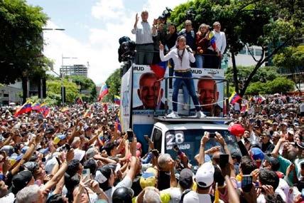 la mañana. Los simpatizantes de la oposición empezaron a congregarse en inmediaciones de Las Mercedes, una zona pudiente y comercial de la capital venezolana. Acudieron con cacerolas, camisetas blancas, pitos y pancartas que denuncian el supuesto “fraude”. Pero la oposición no es la única que se moviliza este sábado. Maduro convocó para hoy la “madre de las marchas” en Caracas y en otras ciudades del país, con el objetivo de celebrar su triunfo electoral y “defender la paz”. “Defender el triunfo” Según un artículo que publicó en The Wall Street Journal, Machado tenía previsto acompañar a González en la movilización. El eslogan de la convocatoria era “triunfamos y ahora vamos a cobrar”, una frase que la exparlamentaria no ha explicado del todo y que genera suspicacias por los precedentes de violencia que han desatado esa clase de llamados.