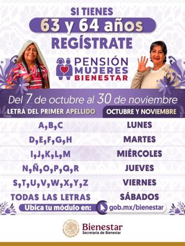 Además dijo que las derechohabientes deberán presentarse según la primera letra de su apellido en módulos que podrán ubicarse a través del portal www. gob.mx/bienestar.