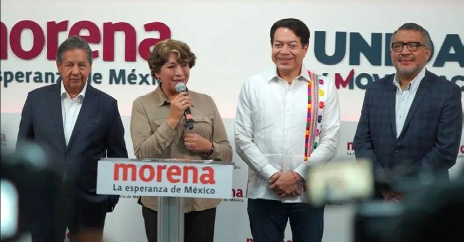 Delfina Gómez será inscrita en su momento como abanderada de Morena y sus aliados Partido del Trabajo (PT) y Verde (PVEM).