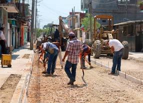 Los trabajos para dignificar el entorno urbano avanzan sobre el tramo ubicado entre las calles Escritores y Río Samaria -paralelo a la Av. Aquiles Calderón Marchena-, que incluyen la colocación de rejilla pluvial a base de concreto hidráulico y nivelación de pozos de visita, entre otras obras.