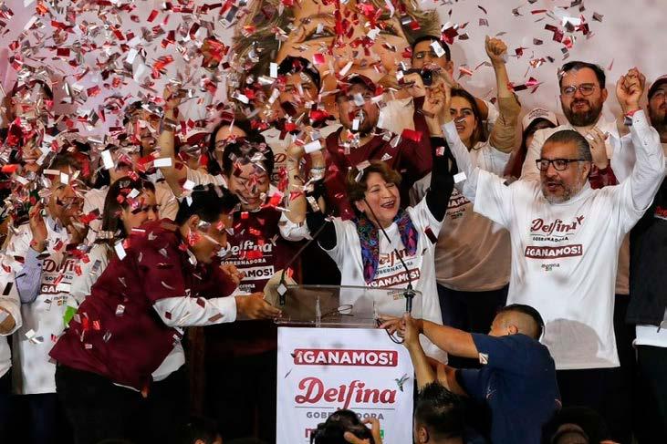 nEl conteo rápido Instituto Nacional Electoral dio el triunfo a la gubernatura del Estado de México, a la candidata de Morena Delfina Gómez con un porcentaje de votación entre 52.1 por ciento y 54.2 nEn Coahuila, el candidato por la alianza Va por México, Manolo Jiménez Salinas, es el virtual ganador con una diferencia del 35% por ciento