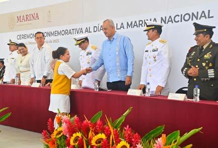 ría de Marina, depositó una ofrenda floral; en este marco, el gobernador felicitó y agradeció a los elementos de la Marina, por el esfuerzo y dedicación a la patria, en las costas y mares de México. Por otro lado,