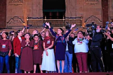 Conocida y reconocida su victoria, Claudia Sheinbaum encabezó un acto masivo en el Zócalo de la Ciudad de México. Ahí dijo: “Por primera vez en 200 años me convertiré en la primera mujer presidenta de México, y me comprometo a gobernar con honestidad, en paz y armonía, sin distingos. Gracias, México, este es tu triunfo. Nuevamente hicimos historia. No los voy a defraudar. Vamos a gobernar para todos y todas. Este triunfo se lo debemos a muchas y muchos que han luchado por nuestra patria, por nuestras libertades y la justicia; hombres y mujeres que han dado la vida por nuestro país, a movimientos sociales, obreros, estudiantiles, médicos, maestros,