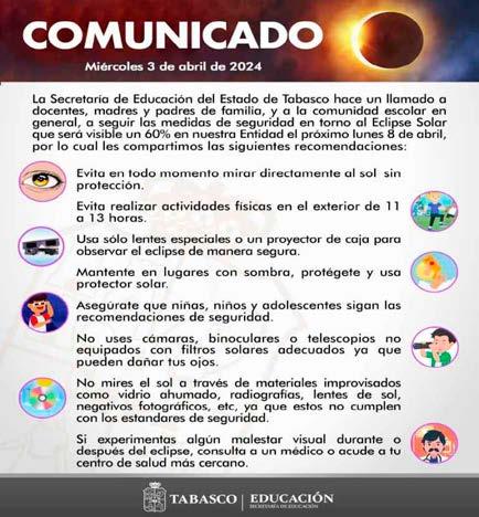 nInvita Secretaría de Salud, a conocer riesgos y medidas de prevención a la salud, sobre este fenómeno, en https://bit.ly/EclipseTotal2024 nLa Setab llama a docentes, padres y madres de familia y a la comunidad escolar en general, seguir medidas de seguridad