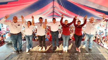 En su visita a Cunduacán Javier May estuvo acompañado por la candidata a la alcaldía, María de la Cruz López; a la diputación federal, Rosa Margarita Graniel y a la diputación local, Diana Gordillo.