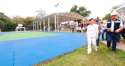 Asimismo, iluminación, pintura y cambio de láminas en gradas del campo de sóftbol y malla perimetral nueva; construcción