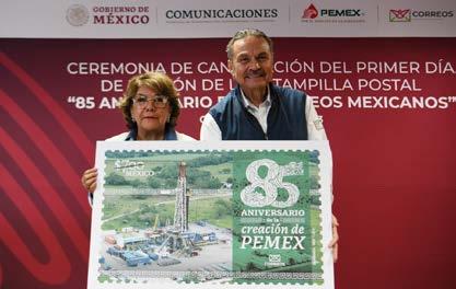 El director general de Pemex, Octavio Romero Oropeza, encabezó la ceremonia de cancelación del primer día de emisión de la estampilla postal, “85 aniversario de la creación de Petróleos Mexicanos”, acompañado de la Titular de Correos de México, Roció Bárcena Molina