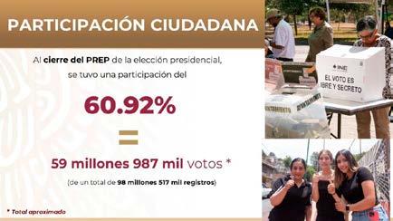 Y 15.6 millones de votos, es decir, 27.9% así como Maynez, 10.4% de la votación. Ese es el resultado del PREP.