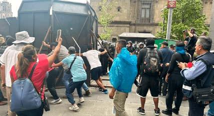 Pero “estábamos terminando cuando de repente un grupo se mete por Corregidora y llegan a cortar pedazos de piedra y a tirar piedras y a romper vidrios”, precisó además. “No había ni policías”…“Ya después sí,