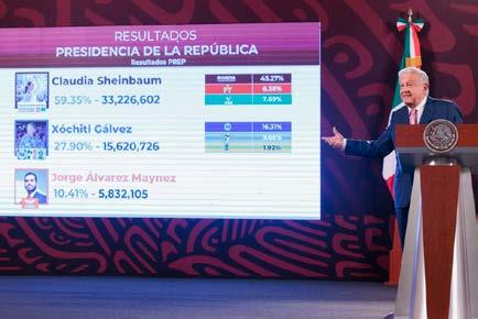 Lo anterior los resultados donde Claudia Sheinbaum, representante de Morena y sus aliados, ganó la Presidencia de México con más del 59 por ciento de los votos según el conteo rápido del Instituto Nacional Electoral (INE). La excandidata de oposición dijo que solicita-