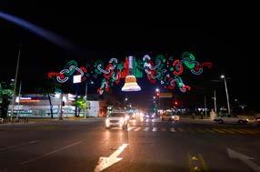 Por esta razón, la primera regidora indicó que el Gobierno de Centro dispuso de 56 conjuntos de adornos luminosos colocados en diferentes puntos de la ciudad, entre los que destacan: