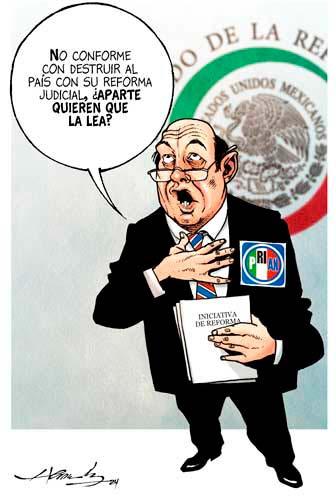 Contra viento y marea, y más allá de dimes y diretes, campañas orquestadas por la oligarquía y sus sicarios mediáticos –con la chequera en manos de Claudio júnior–, “ministros” en paro, jueces en franca violación de la Constitución, trabajadores del Poder Judicial en abierto boicot en contra de la iniciativa, estudiantes manejados por personeros del régimen neoliberal, ataques hepáticos de la oposición y lo que se quede en el tintero (todo ello, entre gritos y rabietas, en lugar de propuestas alternati-
