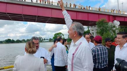 El mandatario acudió a la inauguración del puente Quintín Arauz, en Centla, encabezada por el secretario de Gobernación, Adán Augusto López Hernández. para que se comenzara la construcción del puente.
