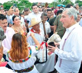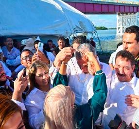 En un momento de su intervención tras escuchar las porras de sus paisanos, mostrando una amplia sonrisa expreso: No sigan porque me voy a amachar y luego que hago”. Resaltó que la transformación está compartida con los pueblos indígenas de México y señaló que el presidente cumplió su palabra de hacer realidad el sueño del puente que viene a beneficiar a 20 comunidades Chontales y señaló que autoridades del pasado habían prometido hacerlo pero nunca cumplieron.