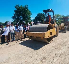 de autoridades munici pales y comunitarias, así como de habitantes de las diversas poblaciones beneficiadas, dieron el banderazo a los trabajos de construcción de la car peta a base de concreto asfáltico en caliente, con aplicación de sello pre mezclado y un ancho pro medio de 6.50 metros.