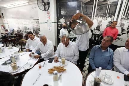 López Hernández desayunó en el tradicional café La Parroquia con los dueños de medios de comunicación local y empresarios
