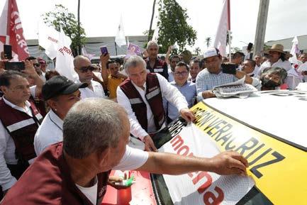 Decenas de automovilistas particulares, choferes de taxis y demás unidades del transporte, se unieron convencidos al llamado del político tabasqueño, haciendo público su apoyo, con la colocación de calcomanías de Morena, en los parabrisas y en las defensas de sus vehículos, mientras las personas que transitaban se detenían a saludarlo e incluso bajaban de sus automóviles para saludarlo, tomarse fotografías, caminar con él algunos tramos, e incluso le ayudarlo en su labor.