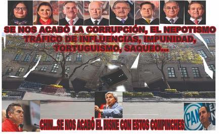 Con la llegada de Norma Piña a la presidencia de la SCJN, creció la corrupción de forma exponencial, Norma Piña se cerró al diálogo, se peleó con el presidente Andrés Manuel López Obrador y con el Legislativo, quiso entrometerse en todo, hasta querer imponer magistrados del Tribunal Electoral cuando NO tiene atribuciones para hacerlo, reuniones en lo oscurito con la oposición, Piña quería ser la Monarca de México, erigirse en el Supremo Poder de los poderes y todo le fue mal, el pueblo dijo Basta y votó por el PLAN-C para Reformar el Poder Judicial de la Federación y que los ministros, magistrados y jueces sean elegidos por el pueblo soberano. Actualmente el Poder Judicial de la Federación se encuentra hecho un desastre, un caos, va en completa picada a la anarquía judicial, ministros, ma-
