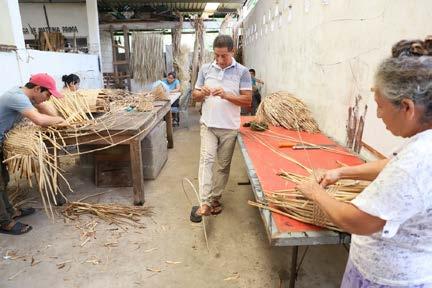 Este taller se dedica a la elaboración de piezas artesanales tejidas con lirio acuático, palma y corazón de caña, mejor conocida como cañita.