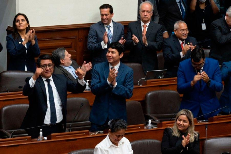 Legisladores peruanos celebran la destitución del presidente Pedro Castillo