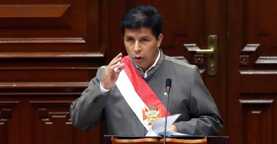 Castillo, un iz quierdista, anunció la disolución del Congreso y la instauración de un gobierno de emergencia en una medida interpre tada como “un golpe de Estado” por la vicepresi denta Dina Boluarte.