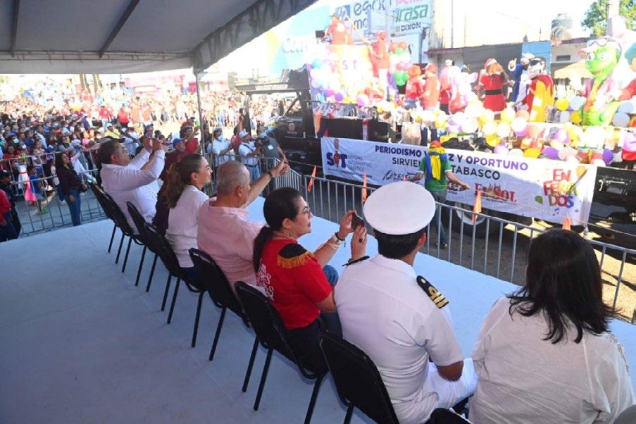 Raúl Torres subrayó las dinámicas organizadas en puntos estratégicos del recorrido, como los parques de Atasta y Los Guacamayos, donde se llevaron a cabo presentaciones de lucha libre y espectáculos de payasos, además de que se regalaron boletos para la rifa de más de un millón de pesos en premios y juguetes.