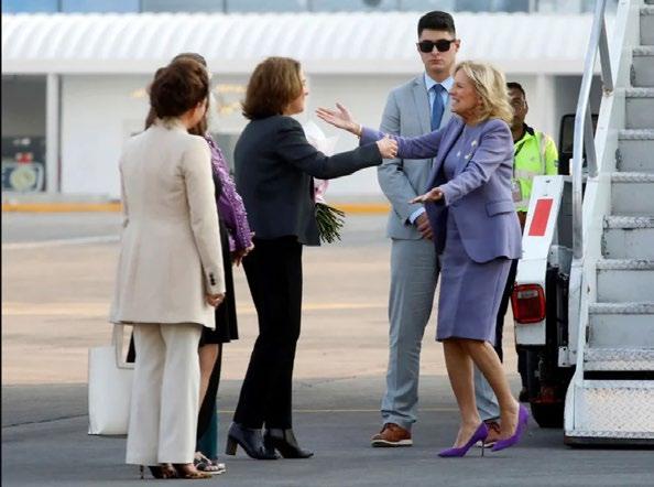 Beatriz Guitérrez Müller recibe a Jill Biden en el AICM