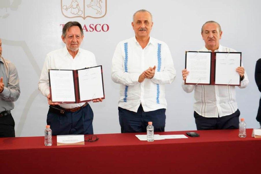 Arropado por los directores técnicos de Pumas de la UNAM, Rafael Puente del Río, y de Soccer Pumas Tabasco, Israel Hernández Pat, el mandatario estatal confió en que el convenio que extiende la presencia del futbol profesional en la entidad, dará continuidad al trabajo deportivo y comercial que se realiza en beneficio del estado.