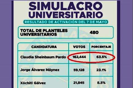 Xóchitl sale reprobada Claudia y Clara ganan simulacro Universitario