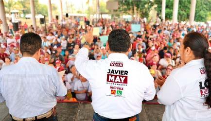 Tenosique, Tab., 8 de mayo de 2024.Javier May Rodríguez afirmó que a partir del triunfo del 2 de junio comenzará una nueva etapa de bienestar en Tabasco, con inversión como nunca en infraestructura, educación, salud, vivienda, campo, apoyos sociales y programas para el pueblo como sembrando vida, crédito ganadero, tandas para el bienestar, becas para estudiantes, entre otros.