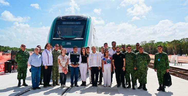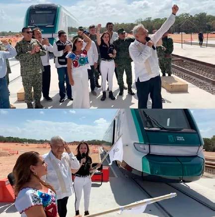 ¡Viva México!”, expresó en una de las cocheras que se construyen en la península.