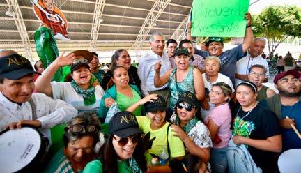 Con una amplia participación de sus anfitriones, en medio de un ambiente festivo literalmente pintado de verde, el aspirante a la Coordinación Nacional para la Defensa de la Cuarta Transformación agradeció el apoyo y pidió a los asistentes, como lo hace él a título personal, respaldar decididamente al gobernador Ricardo Gallardo.