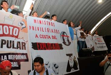 Los trabajadores del Poder Judicial alegan que con la reforma se va a perder su independencia del Poder Judicial, cual independencia e imparcialidad, si el PRIAN tiene secuestrado al Poder judicial, solo está al servicio de sus intereses de grupo, por eso su defensa a ultranza de los conservadores que siente que se les va de las manos la impunidad que les provee el Poder Judi-