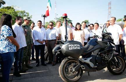 Al entregar equipo táctico, más de 60 mil piezas de uniforme, patrullas, motocicletas, bicipatrullas, unidades para reforzar la proximidad social, torres de vigilancia itinerantes con conexión al C-4, lectores de placas y camionetas que amplían las capacidades de la SSPC, Policía Estatal de Caminos, Centros