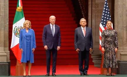 La tarde de este lunes arribó a Palacio Nacional el presidente de Estados Unidos, Joe Biden, y el presidente de México, Andrés Manuel López Obrador. Durante el evento se entonó el Himno Nacional de ambos países; En el mensaje conjunto, se indicó la larga historia de hermandad que existe entre ambos países de Norteamérica.